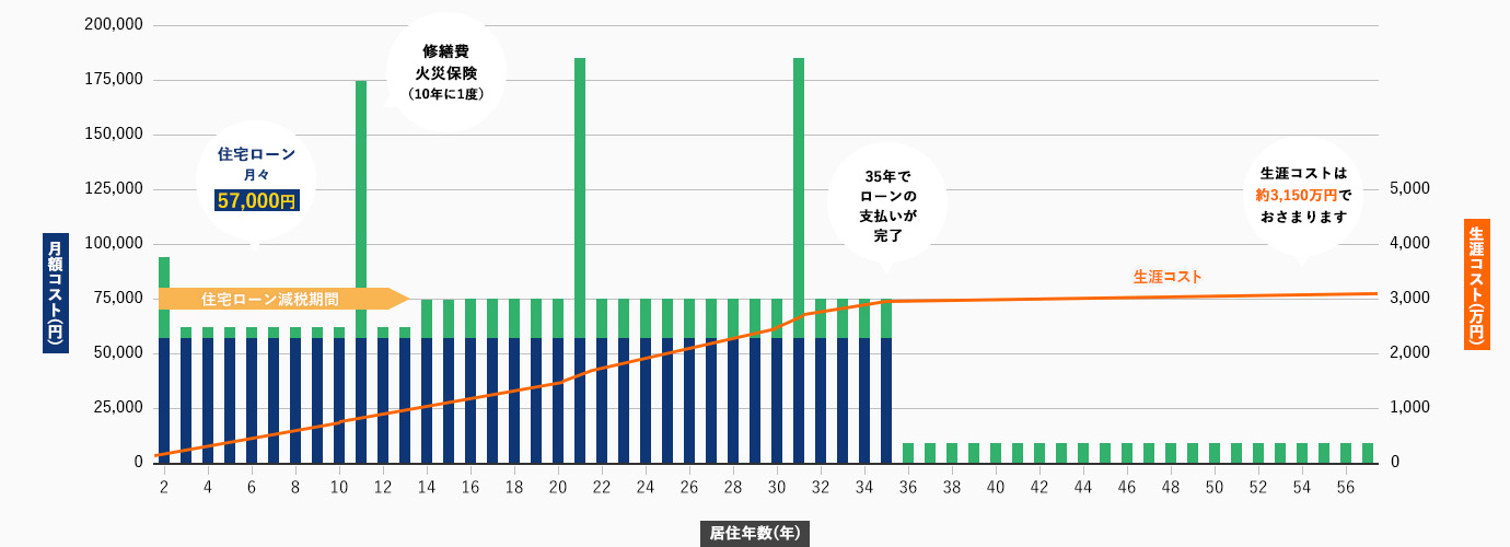 57年間の生涯コスト目安は約3,150万円