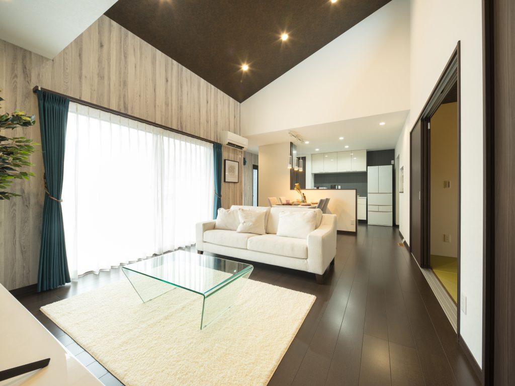▲勾配天井で明るいリビングが家族のだんらんの時間をゆったりと開放的に演出します。