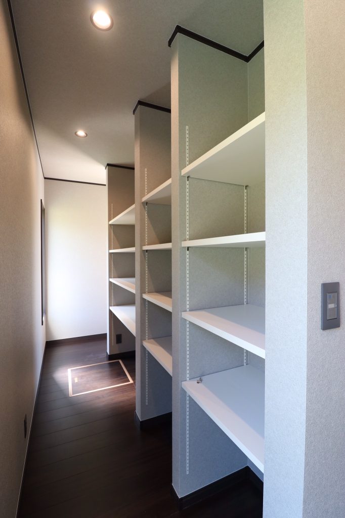 ▲テレビ後ろに大きな収納スペースを設定しているので、リビングをすっきり維持できます。