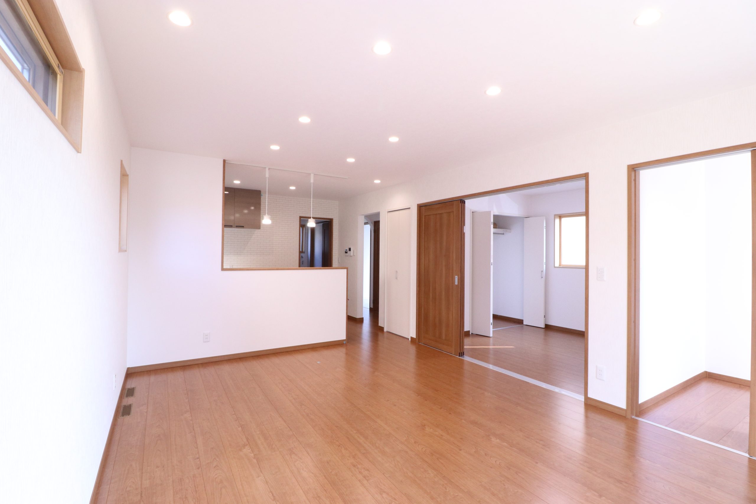 ▲16.8帖のLDKは隣の洋室と続き間にすることで21帖以上の広さを実現。家族みんながゆったりとくつろげる癒しの空間。