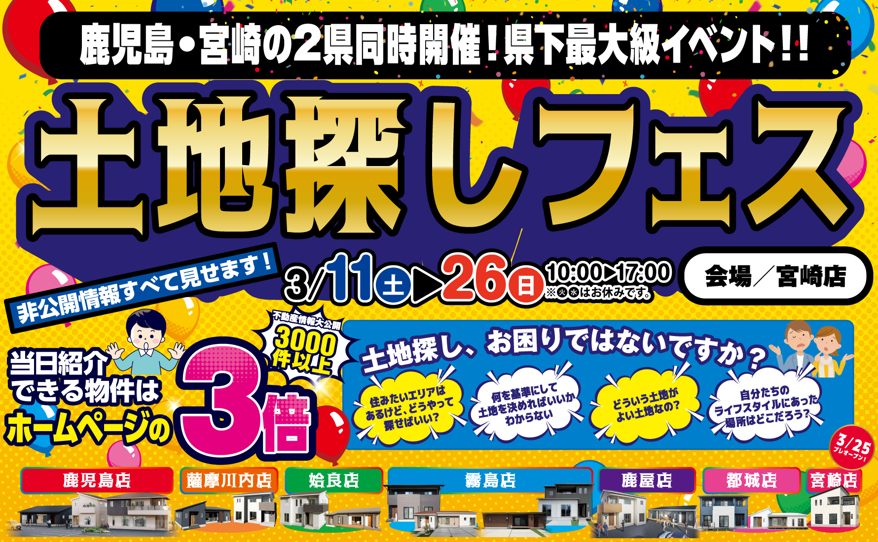 今回、国分ハウジング全店舗にて「土地探しフェス」開催いたします!