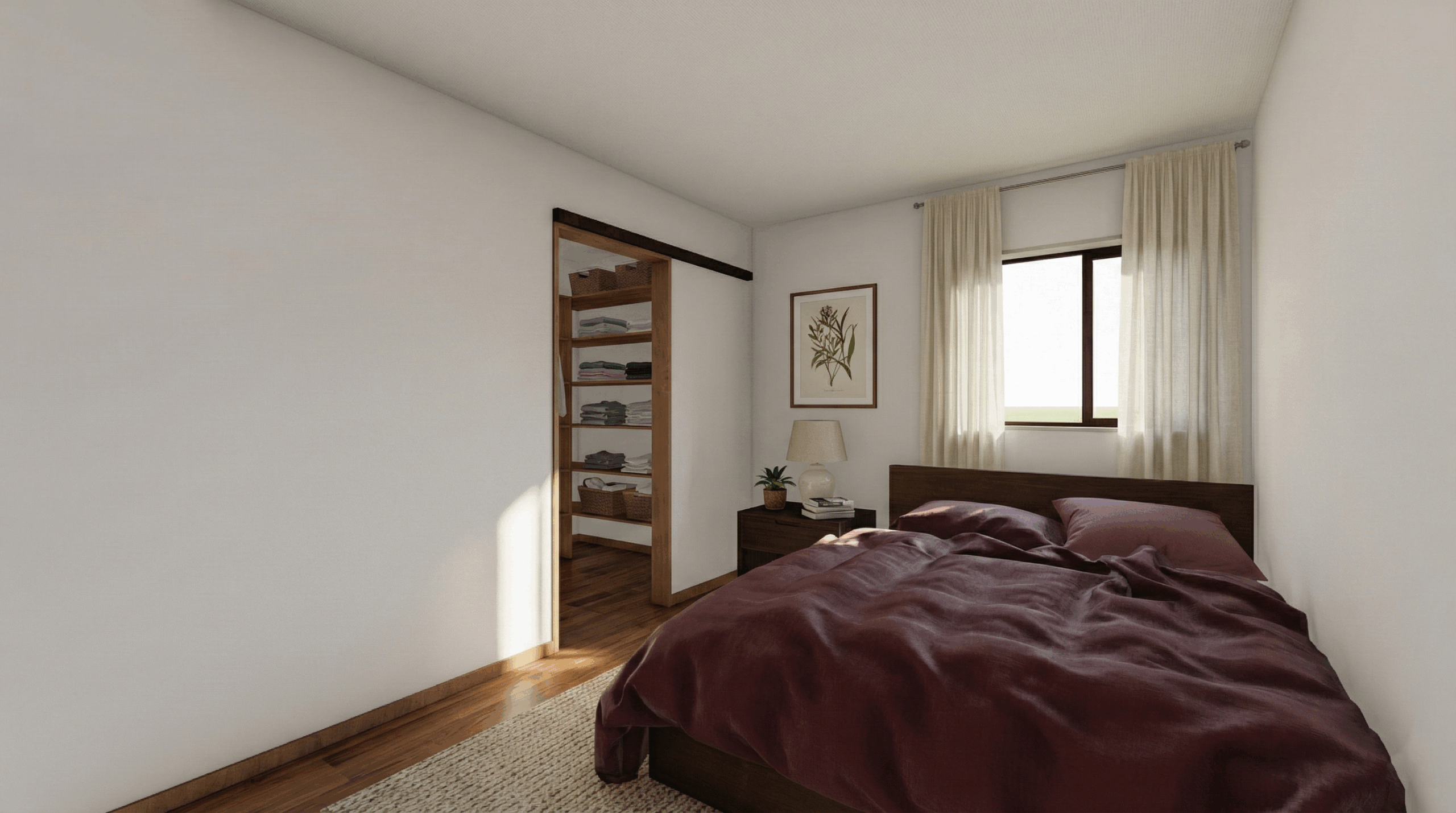 柔らかな光と木の温もりに包まれる、安らぎの主寝室