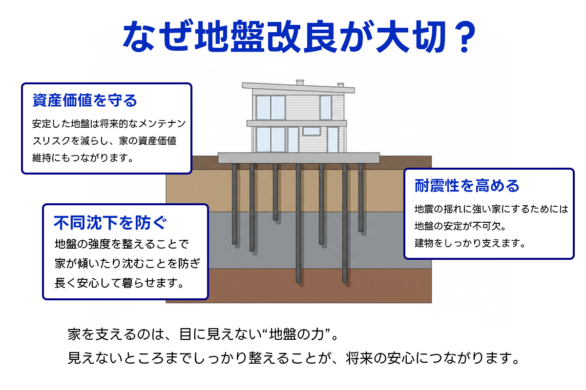しっかりとした「地盤」から家づくりをはじめましょう。