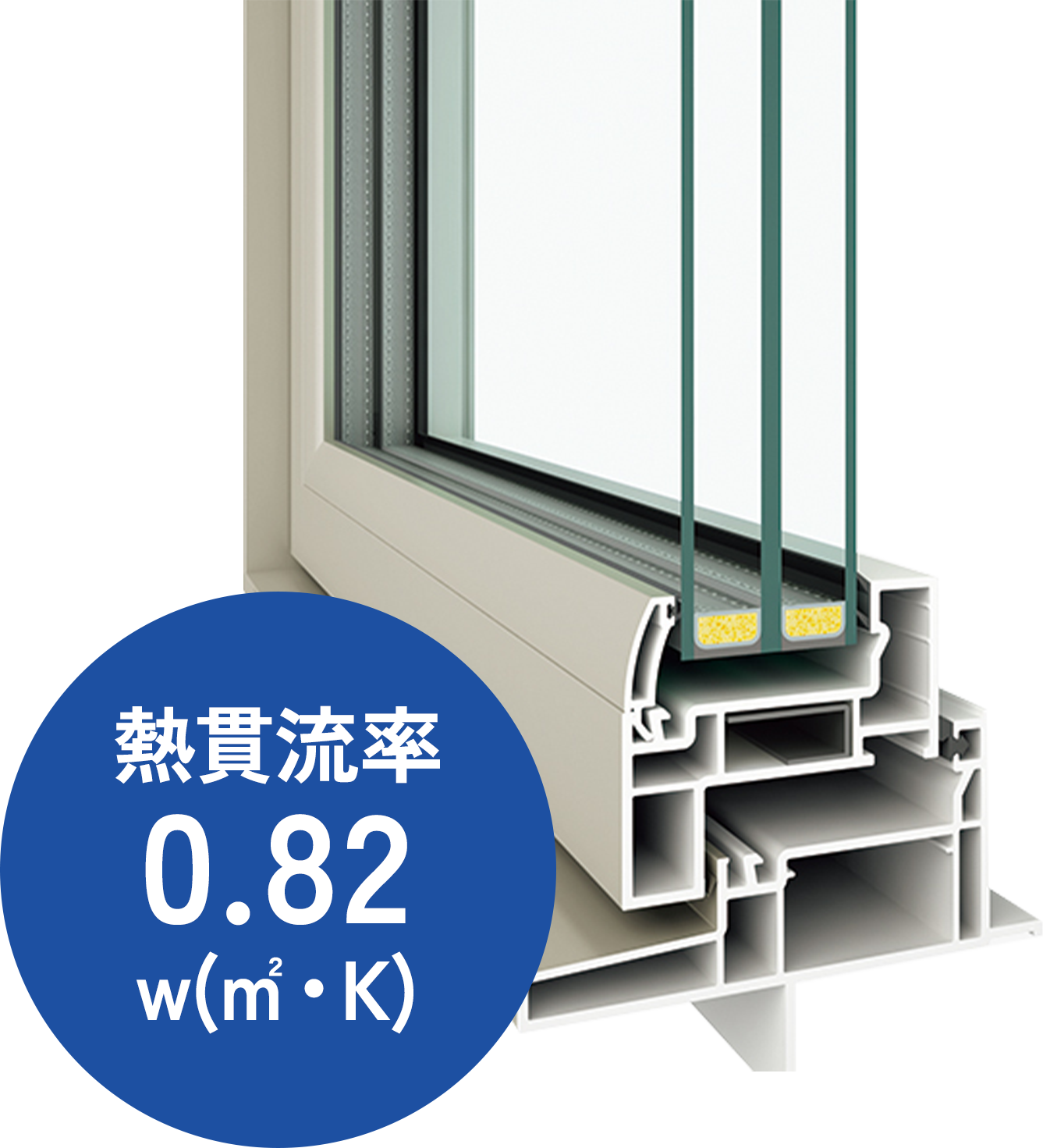 トリプルガラスと樹脂フレームで世界トップクラスの断熱性能を実現します。