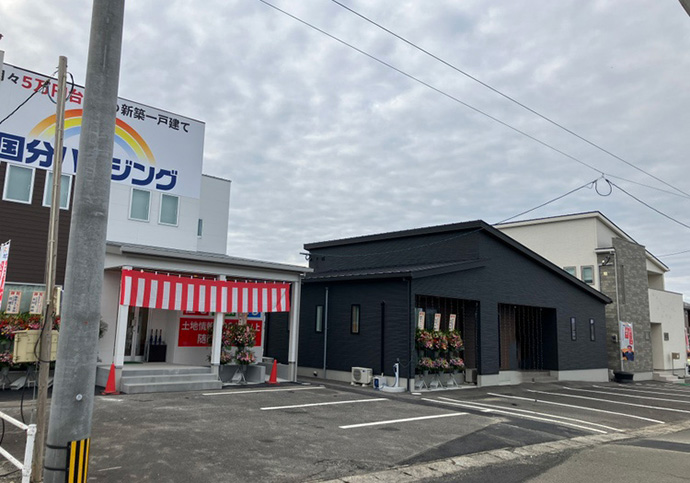 平屋と二階建てのモデルハウスが2棟同時に見学可能な出水阿久根店。