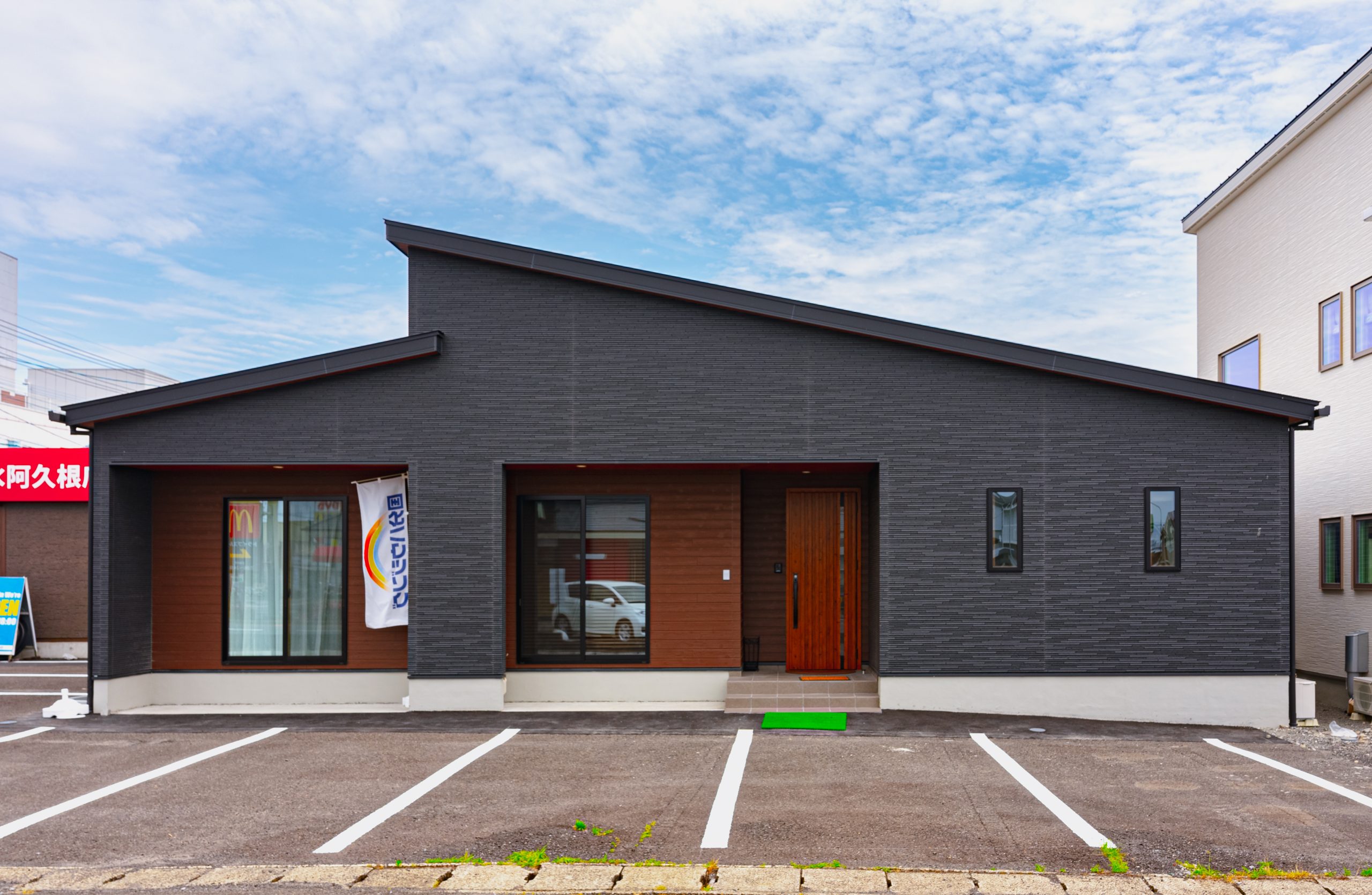ブラックの外壁が存在感を演出する平屋モデルハウス。