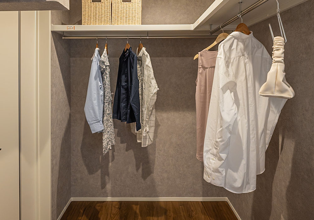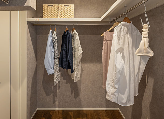 主寝室の奥には衣類をたっぷりと収納可能な広々3畳のウォークインクローゼットがあります。
