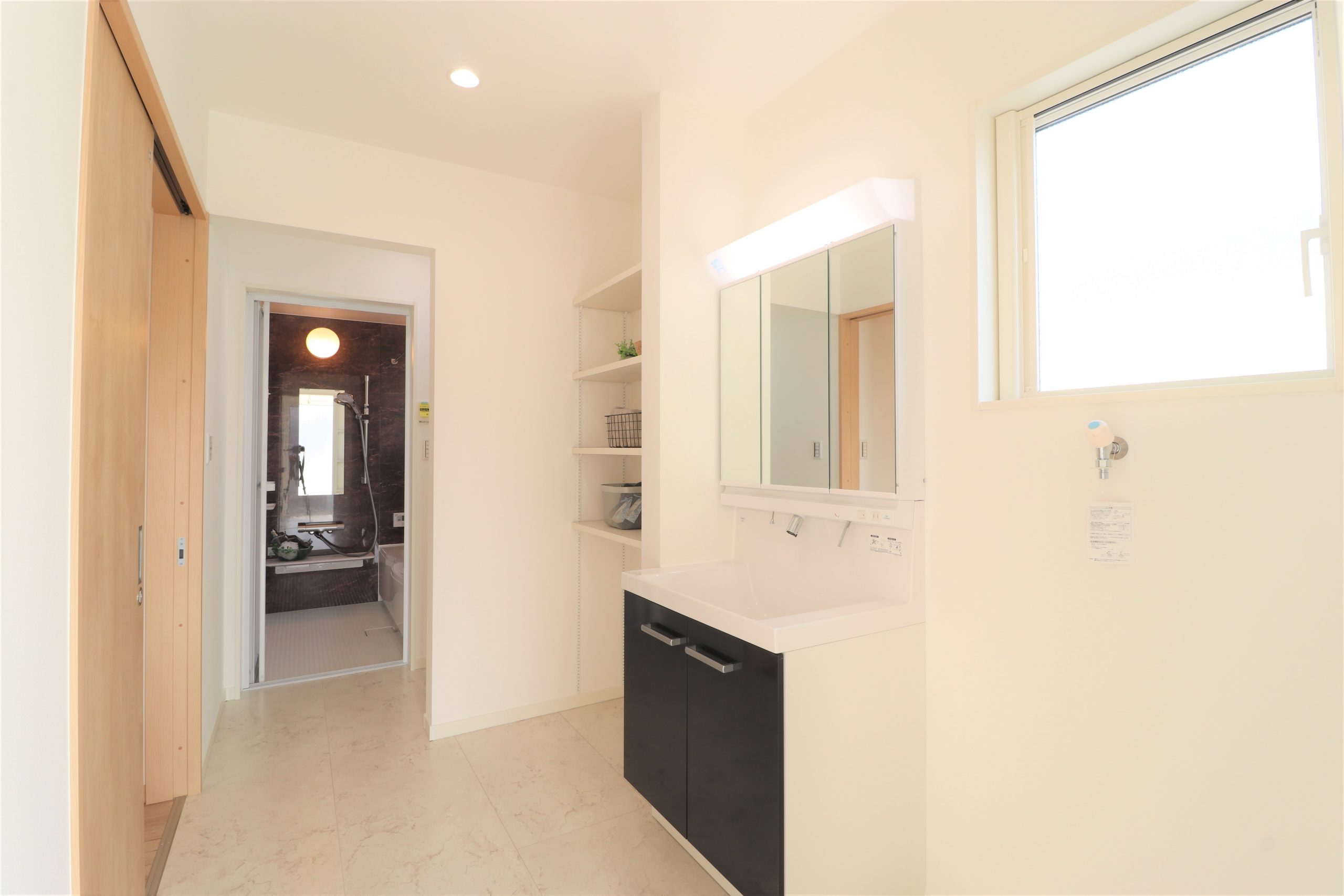 外から浴室までストレートに入れる間取りは、子育て世代には大人気。