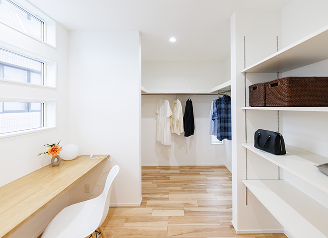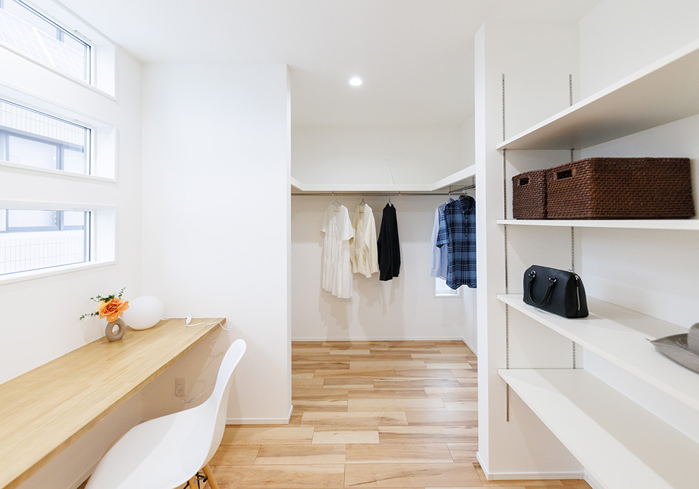 "広々としたウォークインクローゼットで、洋服をたっぷり収納できます。