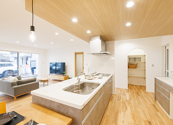 リビングの顔となるキッチンはTakara standardのオフェリアを採用。