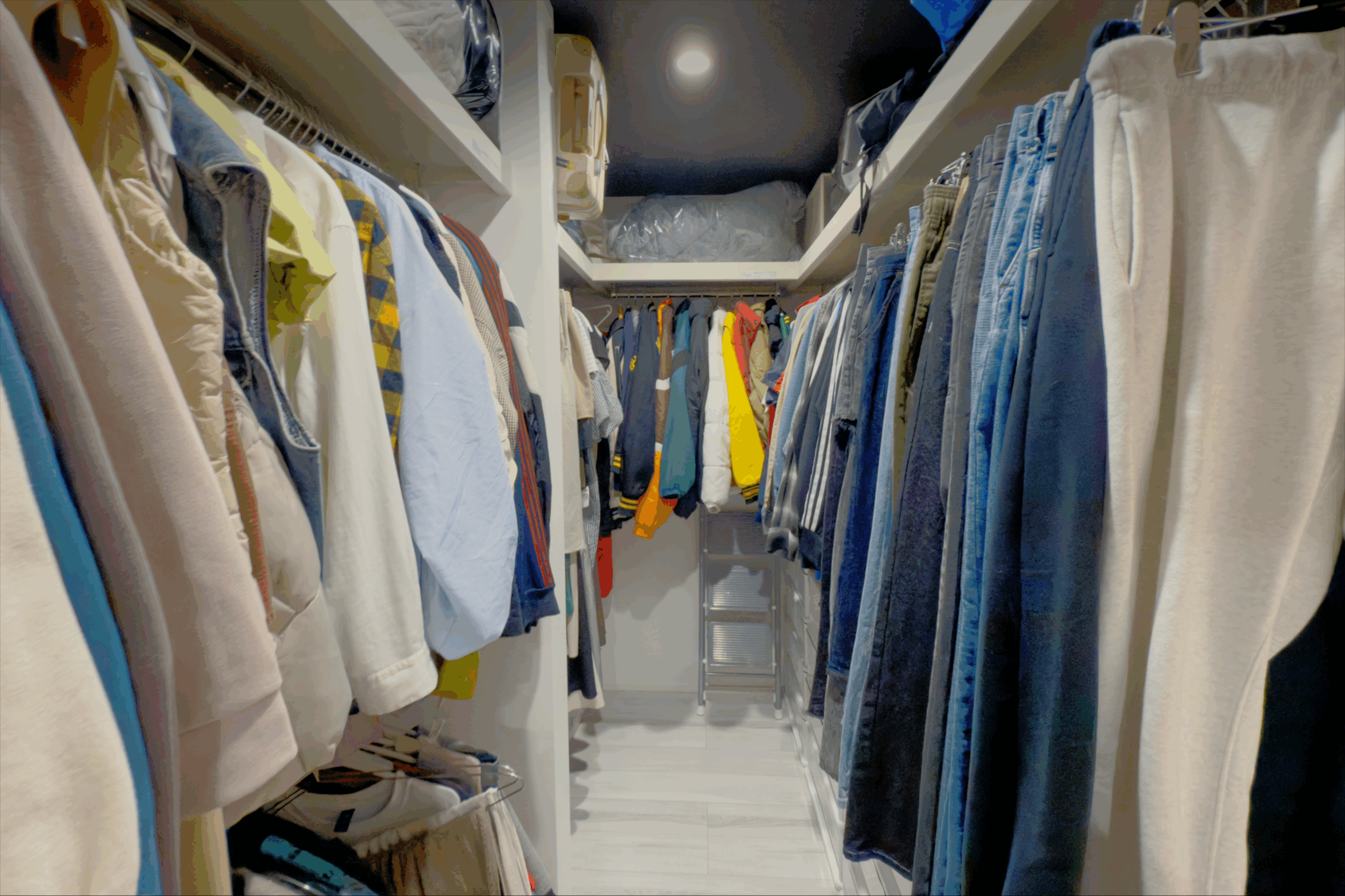 大容量のファミリークローゼットは、家族全員の衣類や小物をまとめて収納できる頼もしいスペース。ハンガーパイプや棚が効率的に配置され、衣替えや日々の支度もスムーズに行えます。家族で一緒にコーディネートを選ぶ楽しみもあり、収納の場でありながら会話が生まれる場所に。暮らしにゆとりと楽しさをプラスしてくれる空間です。