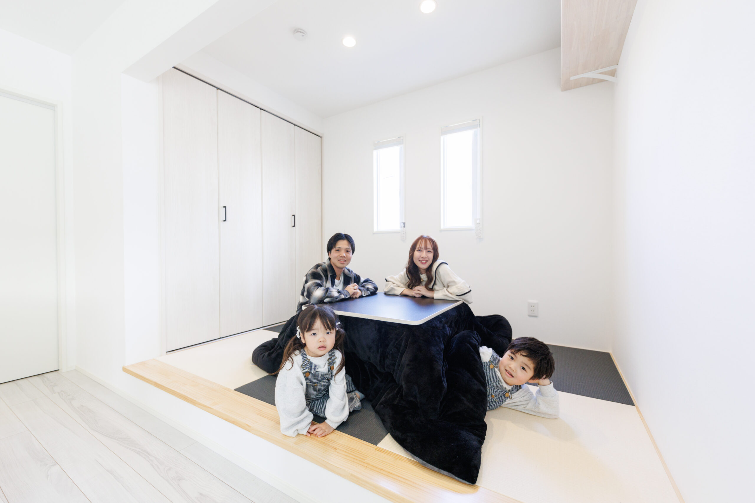 リビングから続く、小上がりの畳コーナー。冬はコタツを囲んで「ほっこり」家族時間。洋室にも馴染むモダンな和空間は、子どもの遊び場やお昼寝、来客時にも活躍する、万能な癒しのスポットです。