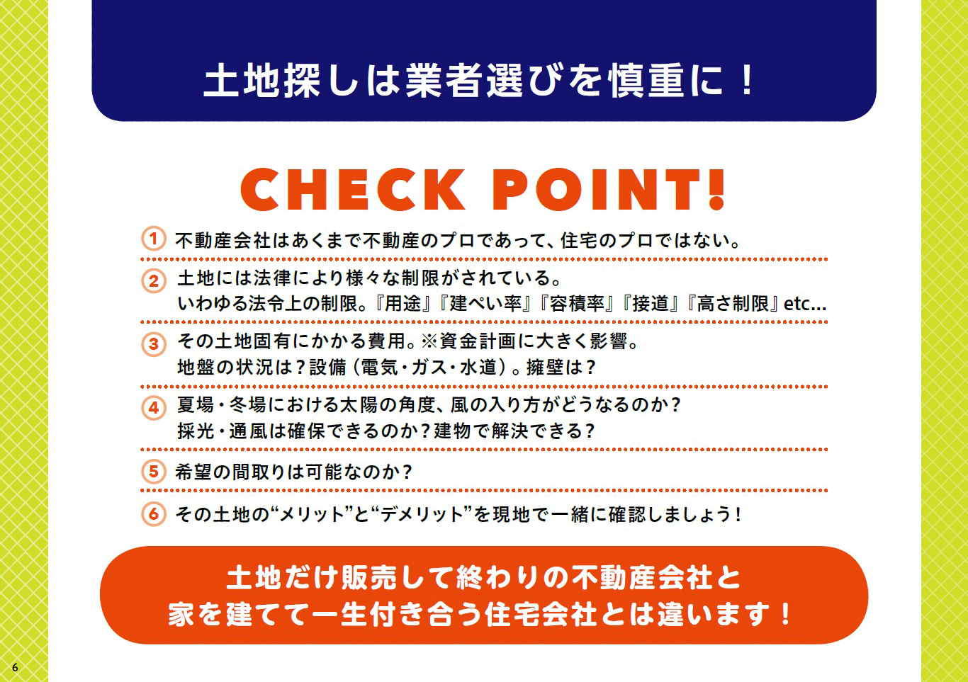 マイホームを購入検討される方で、土地からお探しの方は、これだけチェックしていただきたい内容をポイントにまとめました。